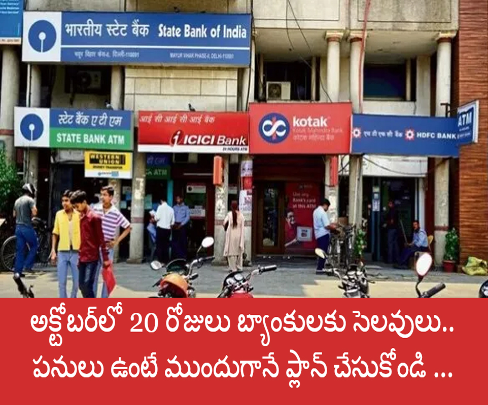 October Bank Holidays: ఈ ఆర్థిక సంవత్సరంలో మరో నెల ముగిసింది. కొత్తగా ప్రారంభమవుతున్న అక్టోబర్‌ మాసంలో దాదాపుగా 20 రోజులు బ్యాంకులు మూతపడనున్నాయి.సాధారణ వారాంతపు సెలవులతో పాటు పండుగలు, జాతీయ దినోత్సవాల కారణంగా ఈ నెలలో ఎక్కువ రోజులు బ్యాంకులకు సెలవులు ఉండబోతున్నాయి. రిజర్వ్‌ బ్యాంక్‌ (RBI) ఇప్పటికే అధికారికంగా ఈ జాబితాను విడుదల చేసింది. అందువల్ల కస్టమర్లు తమ ఆర్థిక సంబంధిత పనులను ముందుగానే ప్లాన్‌ చేసుకోవడం మంచిది.